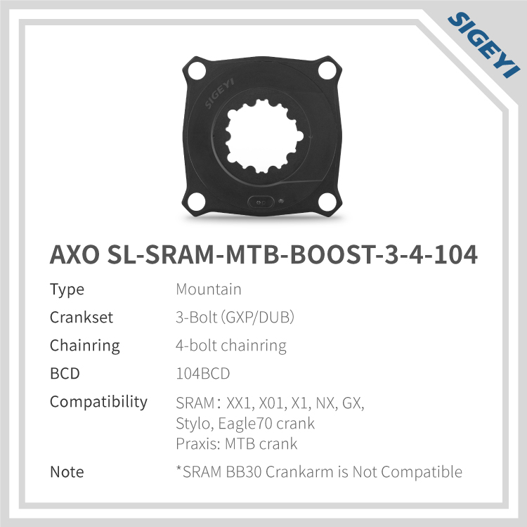 AXO SL spider based Power Meter to fit SRAM MTB cranks. Please select 3-bolt or 8-bolt crank interface
